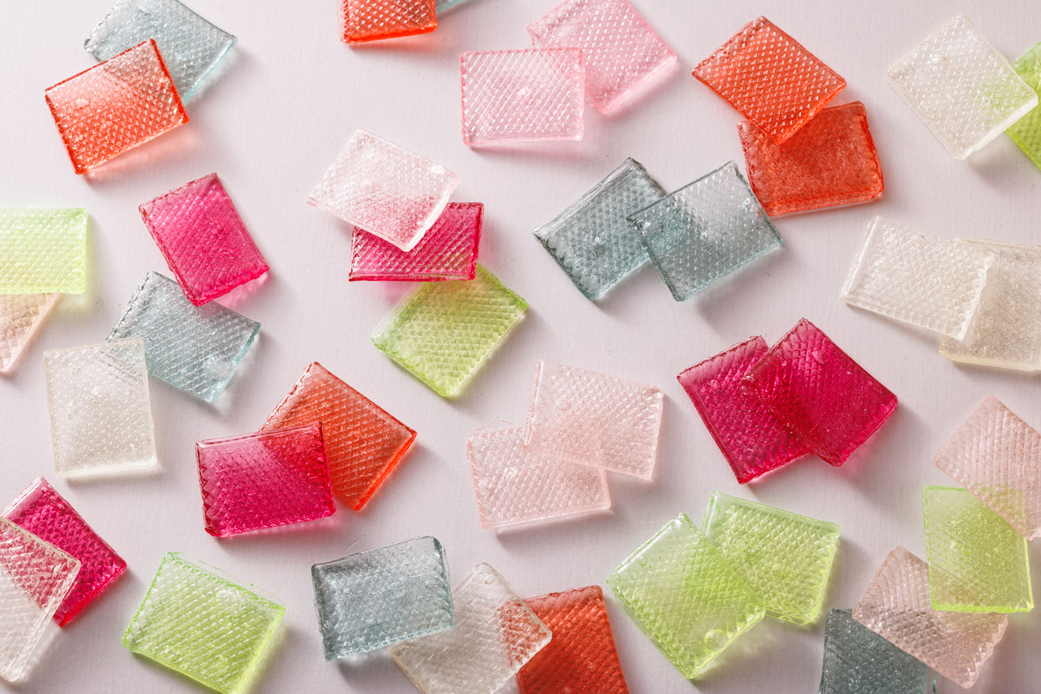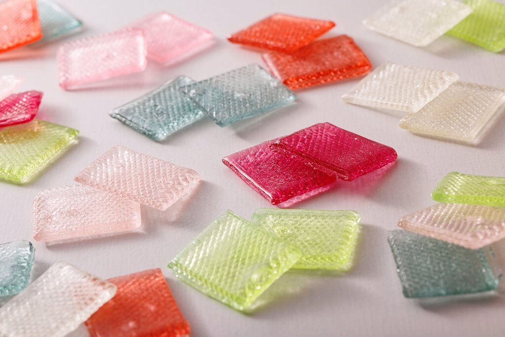 包み紙を開封するとカラフルな6色の薄い飴がぱっと目に入ります。そして実際に飴を食べていただきますと、この飴ならではの洗練された甘みと、パリッとした食感がもたらす独特の体験を感じていただけます。コロコロと舐める丸い飴の味わいとはまた異なり、飴というお菓子の面白さ、奥深さをきっとお楽みいただけます。