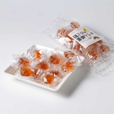 袋の上部にチャックの付いた袋に飴をいれました。お家での保管が便利になるほか、持ち運びしやすいので、お出かけ時のカバンの中におしゃれに収めていただけます。