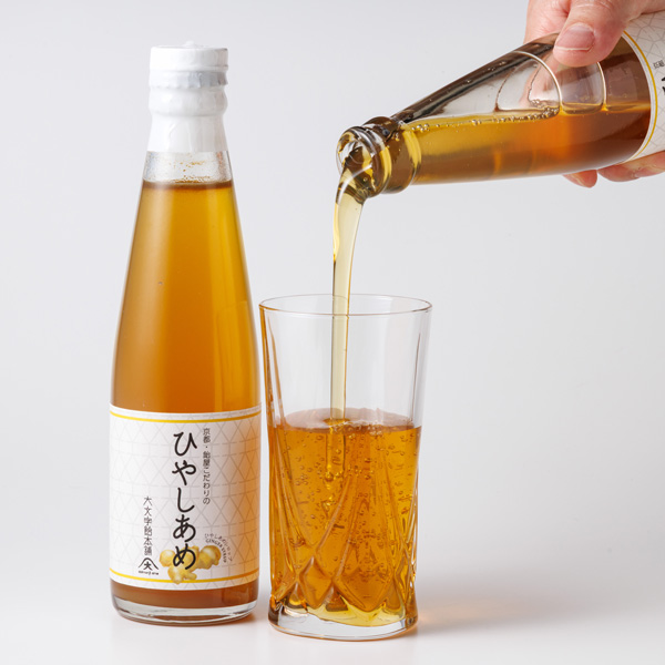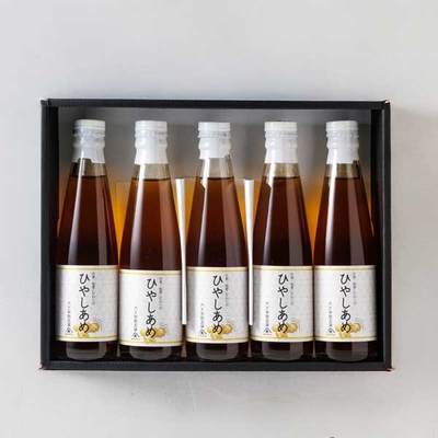 当店オリジナルひやしあめの5本詰めギフト。お中元ギフト、敬老の日ギフトにご好評いただいております。国産の生姜を使用した懐かしい味をお楽しみください。おすすめの飲み方を解説した冷やし飴のしおりを同封させていただきますので、冷やし飴を初めて飲まれる方にも、京都の飴屋ならではの味をお手軽にお楽しみいただけます。